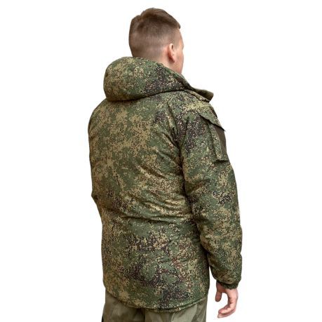 Бушлат обеспечивает наилучшую защиту от холода и ветра в зимнее время года. Он имеет камуфлированную окраску "русская цифра", что делает его незаметным на фоне окружающей среды.