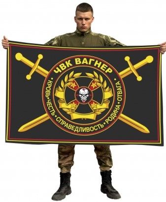 Читать все статьиФлаг ЧВК «Вагнер» с девизом