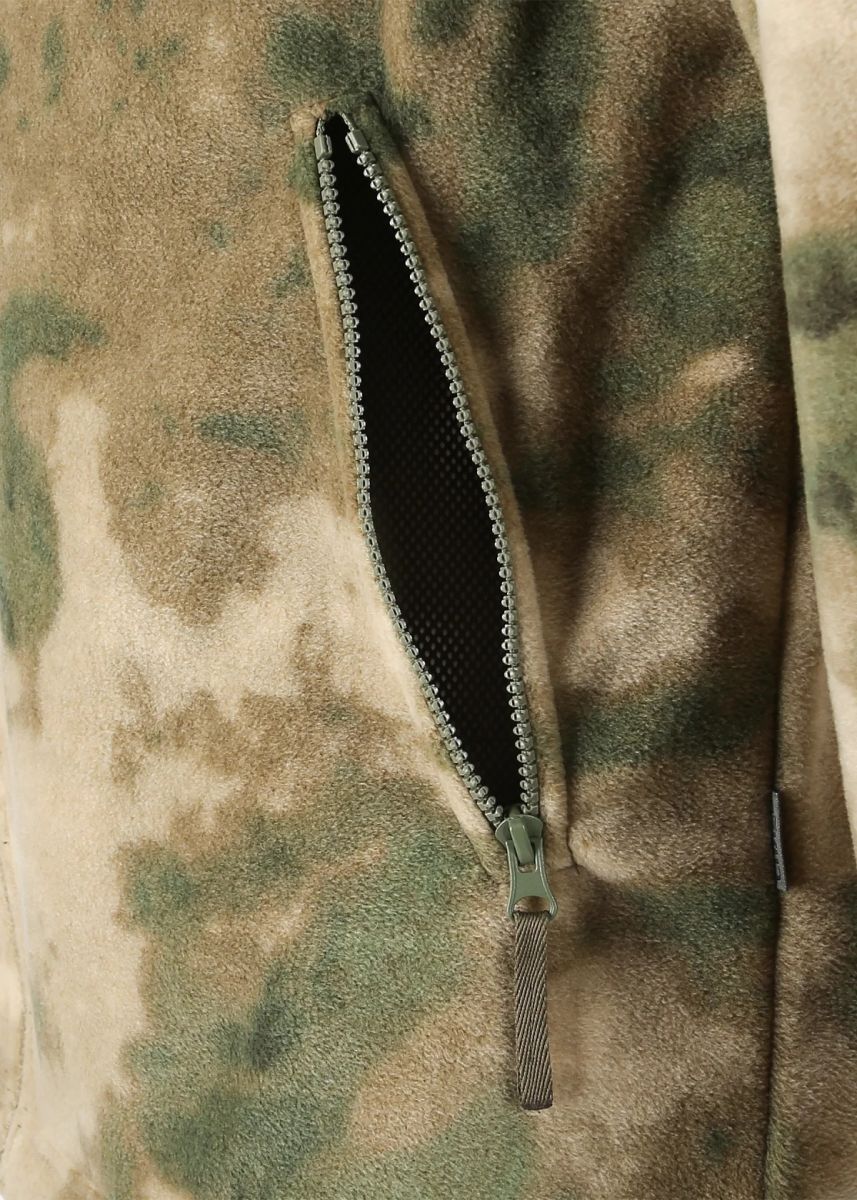 Центральная молния — однозамковая. В области воротника молния прикрыта планкой из флиса, сверху перегиб для защиты подбородка