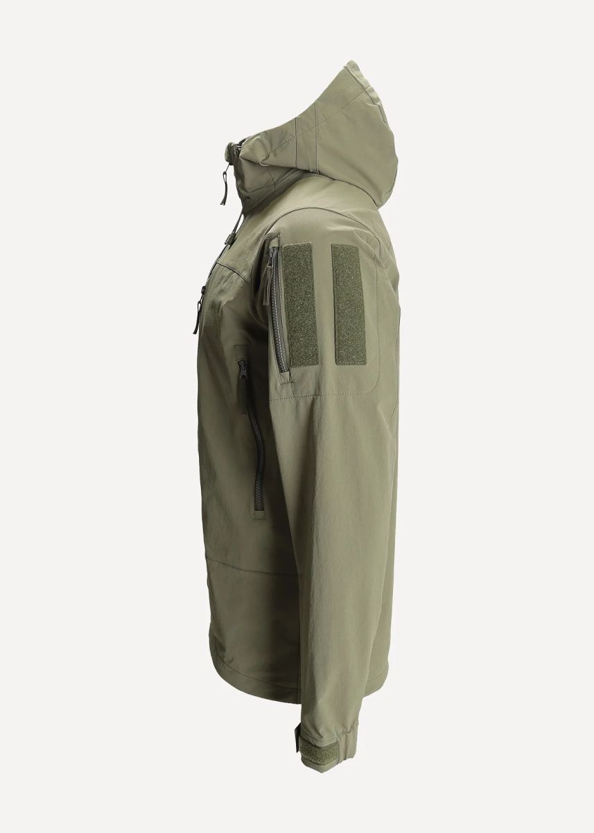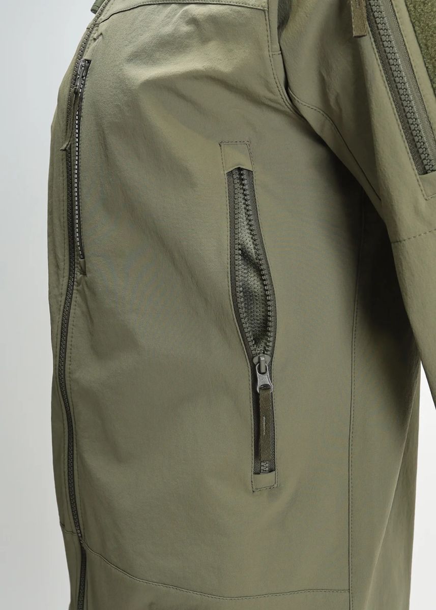 Нарукавные карманы со входом на вертикальной молнии. Липучки для крепления шевронов (10×15 см) выполнены из специального мягкого полотна методом лазерной резки, их края не царапаются